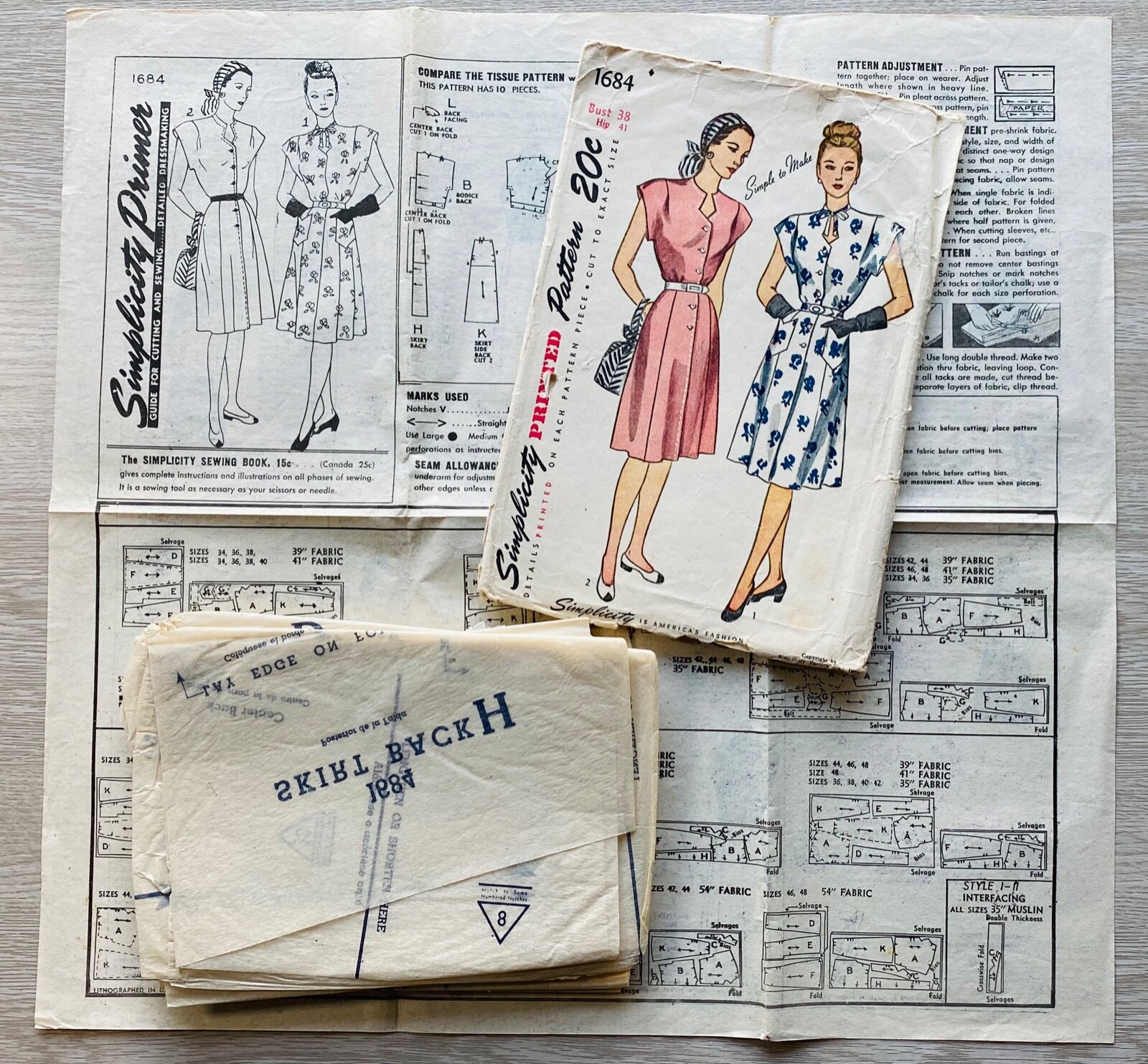 Bust 38 Size 20 Vintage 1940 S Simplicity Pattern 1684 Complete Ebay